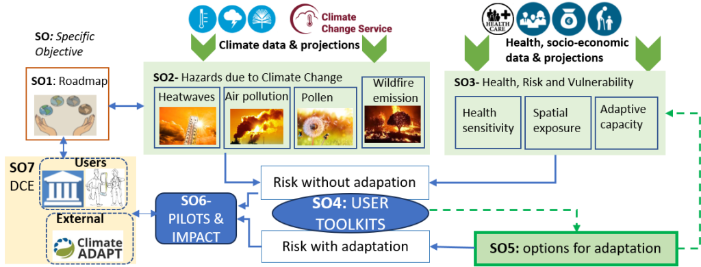 - to provide on-demand vulnerability assessment, health indicators and risk indices of climate change on health at different temporal and spatial scales that can be used to develop management actions in response to climate change.