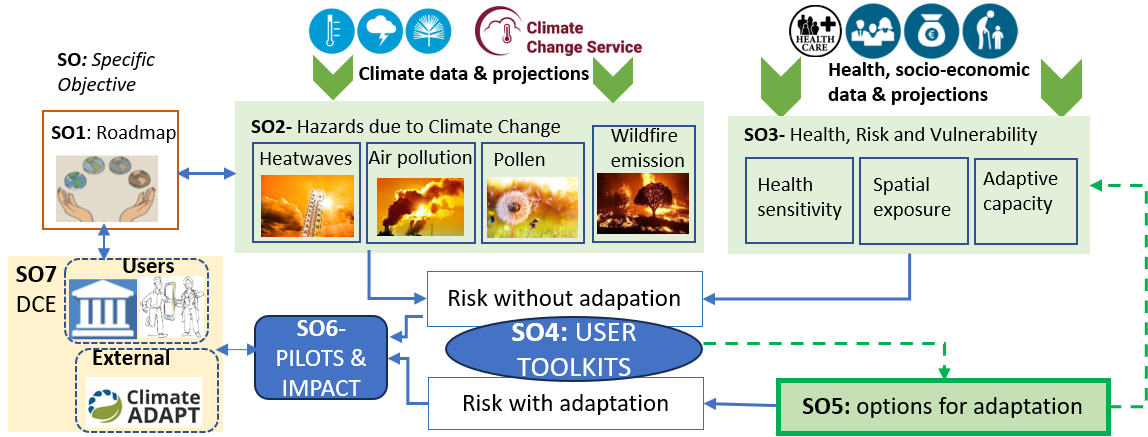 Building the contents of healthRiskADAPT framework: we further develop hazards information, health outcomes, testing and integrate the healthRiskADAPT user-driven toolkits and adaptation options in WP2, WP3, WP4, WP5.
